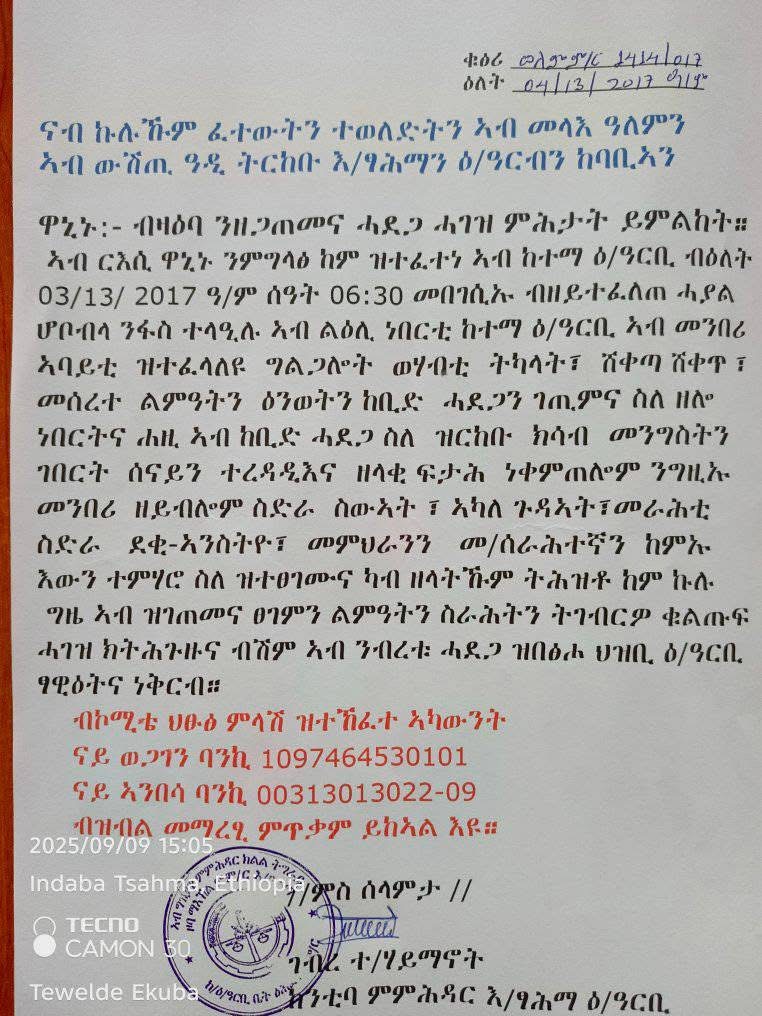 ዝርዝር ሓበሬታ/More details: https://www.facebook.com/share/v/1BBmd67Ypv/?mibextid=wwXIfr